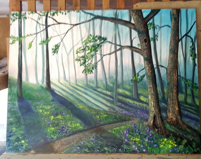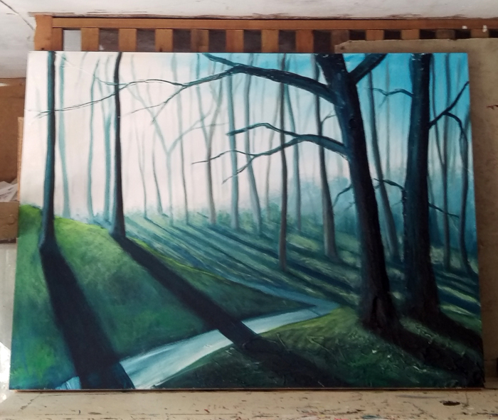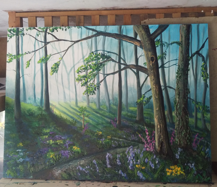 I recently painted this large Spring forest on a big wooden panel 48x36" (122x91cm)